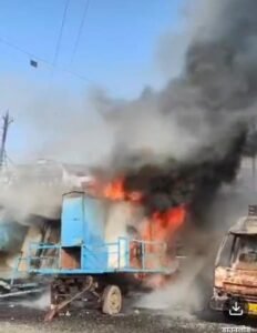 जबलपुर: नौदरा ब्रिज के पास पर खाली पड़ी जगह पर खड़े दो मोबाइल टॉयलेट पर अचानक से आग भडक़ उठी। देखते ही देखते आग ने विकराल रूप धारण कर लिया और धुआं का गुब्बार उठने लगा। जिसको देखते ही क्षेत्र में हडक़ंप मच गया और लोगों की भीड़ इक_ी हो गई। सूचना मिलते ही मौके पर पहुंची फायर ब्रिगेड की गाड़ी ने कड़ी मशक्कत के बाद आग पर काबू पाया।