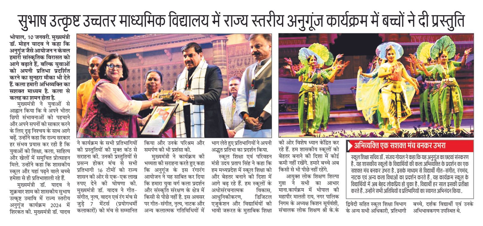 भोपाल एवं मध्य कला हमारी अभिव्यक्ति का सशक्त माध्यम: मुख्यमंत्री .. 1 year ago FacebookShare on XLinkedInWhatsAppEmailCopy Link