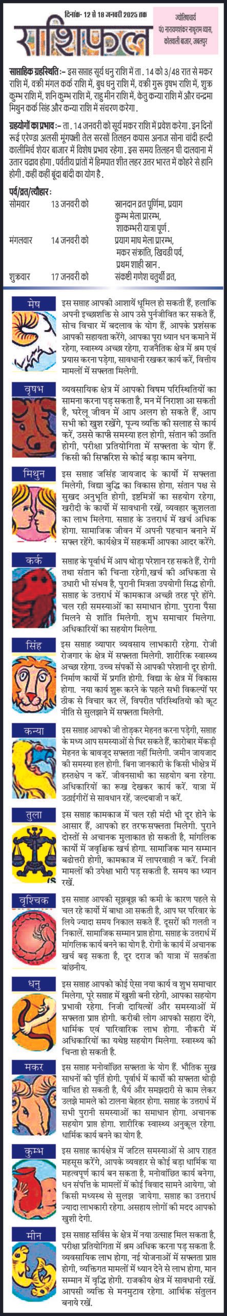 फीचर्ड न्यूज़ राशि फल साप्ताहिक राशिफल – 12 से 18 जनवरी 2025 तक .. 1 year ago FacebookShare on XLinkedInWhatsAppEmailCopy Link