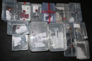 जबलपुर। क्राइम ब्रांच समेत नौ थानों की पुलिस ने 14 बदमाशों को गिरफ्तार किया हैं जिनके कब्जे से 15 फायर आम्र्स, 18 कारतूस जप्त किये गये है। अतिरिक्त पुलिस अधीक्षक शहर आनंद कलादगी ने बताया कि ओमती पुलिस ने अनीश उर्फ चीनू सोनकर 20 वर्ष निवासी रसोई बार के पीछे सिंधी मोहल्ला ओमती, जयदीप सोनकर उर्फ मटरू 18 वर्ष निवासी सामुदायिक भवन के पास भरतीपुर को पकड़ा। एक पिस्टल एवं चार कारतूस जब्त किए गये। गोराबाजार पुलिस ने कृष्णा उर्फ मिक्की यादव 20 वर्ष निवासी बिलहरी बताया से एक पिस्टल एक कारतूस जब्त किया। बरेला पुलिस ने तारा यादव 29 वर्ष निवासी खेरमाई मंदिर के पास शिवपुरी कजरवारा को एक पिस्टल एवं एक कारतूस के साथ दबोचा। बेलखेड़ा पुलिस ने नीलेश लोधी 24 वर्ष निवासी ग्राम रजोला बेलखेडा से एक रिवाल्वर जप्त की। गढ़ा पुलिस ने तुषार सोनी उर्फ गुल्लू 22 वर्ष निवासी देवताल को एक पिस्टल, दो कारतूस के साथ दबोचा। हनुमानताल पुलिस ने वंश सोनकर 22 वर्ष निवासी भरतीपुर ओमती को एक पिस्टल, एक कारतूस, नीरज उर्फ बाबा 35 वर्ष निवासी भरतीपुर को दो पिस्टल, दो कारतूूस, गौतम सोनकर 23 वर्ष निवासी बड़ी ओमती को एक पिस्टल, एक कारतूस के साथ पकड़ा। इसी प्रकार गोसलपुर पुलिस ने मनसिंह राजपूत 21 वर्ष निवासी ग्राम आलगौड़ा को एक पिस्टल, एक कारतूस, रांझी पुलिस ने जितेन्द्र पटैल 23 वर्ष निवासी ग्राम जमुनिया पोस्ट सकरा थाना पाटन से एक पिस्टल, एक कारतूस, सुमित दाहिया 22 वर्ष निवासी घमापुर से एक पिस्टल, एक कारतूस, कृष्णा कुमार हासवानी उर्फ बाबू 24 वर्ष निवासी सिंधी गुरूद्वारा लालमाटी से दो पिस्टल, दो कारतूस पकड़े। सिविल लाइन पुलिस ने अनुज सेन 20 वर्ष निवासी भोलानगर से एक पिस्टल, एक कारतूस जब्त किया।