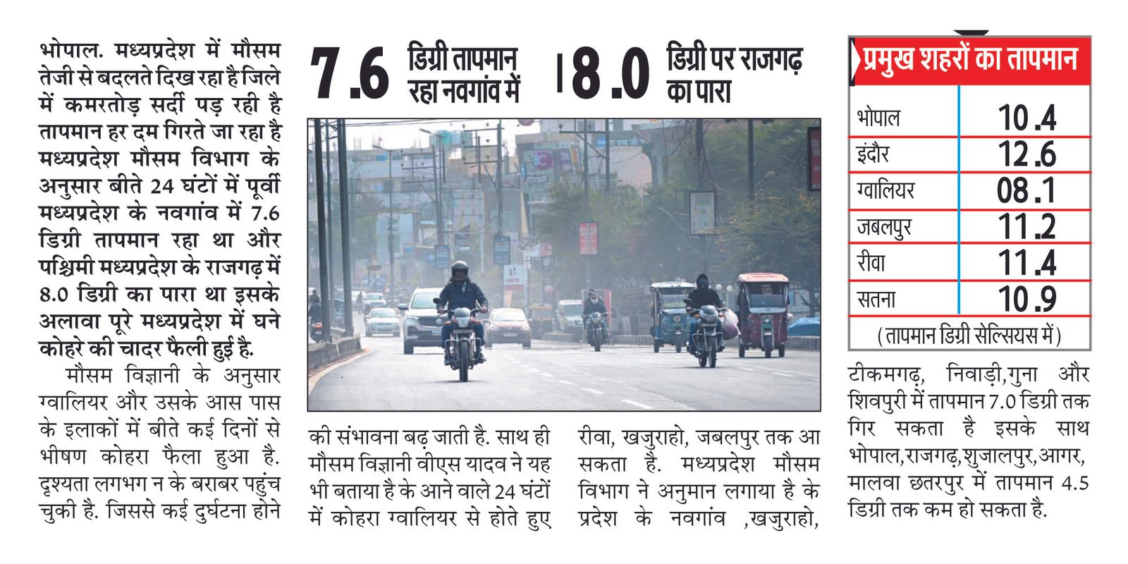 भोपाल एवं मध्य कोहरे में लिपटी मध्यप्रदेश की सुबह .. 1 year ago FacebookShare on XLinkedInWhatsAppEmailCopy Link