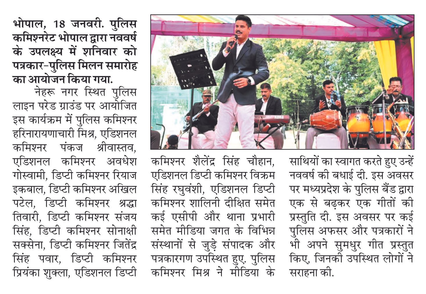 भोपाल एवं मध्य पुलिसकर्मियों के गानों से गूंजा परेड ग्राउंड .. 1 year ago FacebookShare on XLinkedInWhatsAppEmailCopy Link
