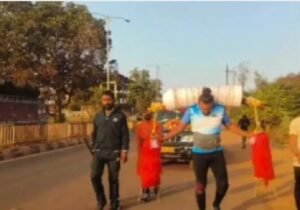 इसके अलावा केंद्र सरकार में भी उसने गौमाता को राष्ट्रमाता बनाने की अर्जी लगाई हैं लेकिन अर्जी स्वीकार न होने के बाद अब कमल 62 किलो अपने कंधों पर भार लेकर जिसमें 51 किलो गंगाजल हैं, महाकाल उज्जैन के लिए निकल पड़ा है।कमल आर्य ने बताया कि 26 नवंबर 2024 को हरियाणा से निकला था और आज 54वाँ दिन है जब वह शिवपुरी पहुंचा था। वह अपने कंधो पर 62 किलो की कावड़ का भार लेकर जिसमें 51 किलो गंगाजल है उसको लेकर पैदल अपने साथियों के साथ चल पड़ा है।