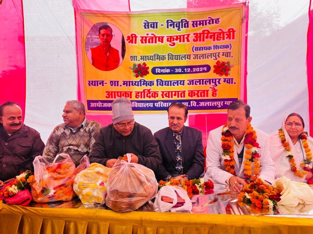 ग्वालियर। सहायक शिक्षक संतोष कुमार अग्निहोत्री का विदाई समारोह शासकीय माध्यमिक विद्यालय जलालपुर ग्वालियर में आयोजित किया गया। कार्यक्रम के मुख्य अतिथि संकुल प्राचार्य जे.सी.प्रजापति थे। अध्यक्षता नोडल प्रभारी जगदीश अग्रवाल ने की। विशिष्ट अतिथि के रूप में पूर्व बी.आर.सी.सी. मुरार राकेश कंचन, मध्यप्रदेश कर्मचारी संघ कांग्रेस के उप-प्रांताध्यक्ष रविंद्र […]
