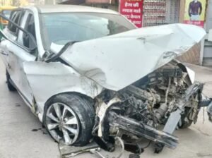 खड़े वाहनों को टक्कर मारकर एटीएम बूथ और दुकान में घुसी कार