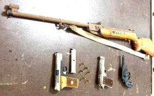 जबलपुर: क्राइम ब्रांच एवं हनुमानताल पुलिस ने संयुक्त कार्यवाही करते हुए सिद्धबाबा रोड फकीरचंद्र अखाडा के पास घेराबंदी करते हुए एक कार को रोक कर तीन बदमाशों को फायर आर्म्स के साथ गिरफ्तार किया जिनके कब्जे से 2 पिस्टल, 1 रिवाल्वर, 1 एयर गन, 6 कारतूस, कार जप्त की गई। टीआई धीरज राज ने बताया कि क्राईम ब्रांच को सूचना मिली कि सिद्धबाबा रोड फकीरचंद्र अखाडा के पास एक कार में संदिग्ध बैठे है और अवैध हथियार रखे हुये है, कार को घेराबंदी कर चैक किया।