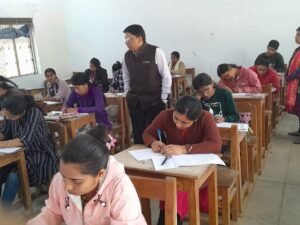 जबलपुर: रानी दुर्गावती विश्वविद्यालय के कुलगुरु द्वारा लगातार ही परीक्षा केंद्रों पर नजर रखे हुए हैं। जहां पर आयोजित की जा रही परीक्षाओं की सभी व्यवस्थाओं का भी जायजा ले रहे हैं। उसी क्रम में कुलगुरु प्रो. राजेश कुमार वर्मा द्वारा रानी दुर्गावती विश्वविद्यालय के नवयुग महाविद्यालय के परीक्षा केन्द्र में दोपहर 1 बजे से 4 बजे तक द्वितीय पाली में आयोजित की जा रही एम.ए., एम.एससी, एम.काम, एवं एम.ए. एजुकेशन प्रथम सेमेस्टर 2024 की परीक्षाओं का औचक निरीक्षण किया गया। इस परीक्षा केन्द्र में लगभग 279 परीक्षार्थी उपस्थित थे। कुलगुरु ने उक्त परीक्षा केन्द्रों की व्यवस्थाओं पर संतोष व्यक्त किया। इस अवसर पर महाविद्यालय के प्राचार्य डॉ. संजय तिवारी उपस्थित रहे।