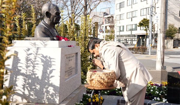 यादव ने जापान में महात्मा गांधी की प्रतिमा पर अर्पित की पुष्पांजलि