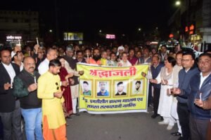 मप्र प्रगतिशील ब्राम्हण महासभा एवं सर्वजातीय मंच द्वारा मालवीय चौक से बड़े फुहारा तक केंडल मार्च निकाला। साथ ही आरोपियों को कड़ी से कड़ी सजा की मांग करते हुए कहा कि परिवार के लोगों को नौकरी मिले, आरोपियों के अवैध मकान गिराए जाएं पाटन पुलिस थाना प्रभारी को सस्पेंड किया जाए । इस अवसर पर पंडित वासुदेव शास्त्री, एड आशीष त्रिवेदी,बृजेश दुबे, अखिलेश दीक्षित, गोड्डा महाराज, वैभव सिंह, संपूर्ण तिवारी, दिनेश यादव, मधु यादव शरद अग्रवाल अमरीश मिश्रा धीरज पटेरिया, रत्नेश मिश्रा, एस एस ठाकुर,मुकेश दुबे, बब्बू यादव, राजेंद्र चौधरी राममूर्ति मिश्रा नवीन शुक्ला नवीन शुक्ला, त्रिपाठी गोविंद दुबे, बृजेंद्र बृजेश, बघेली बाहर अहमद अंसारी ,सरदार सुरजीत सिंह आदि उपस्थित थे ।