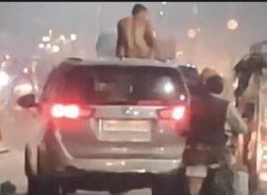 लग्जरी कार की छत पर निर्वस्त्र बैठकर बनाया वीडियो, अब पुलिस कर रही ट्रेस