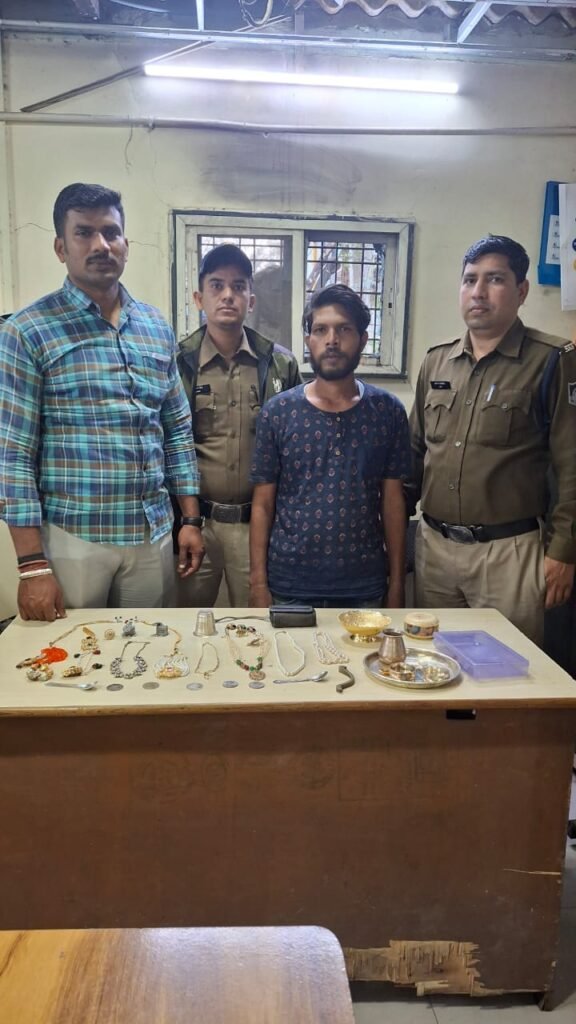 आरोपी के कब्जे से लाखों के आभूषण बरामद आरोपी के खिलाफ 14 अपराध हैं दर्ज नव भारत न्यूज इंदौर. थाना विजय नगर पुलिस ने दिन-दहाड़े सूने घर में सेंध लगाकर लाखों की चोरी करने वाले आरोपी को गिरफ्तार कर लिया. पुलिस ने आरोपी के कब्जे से तीन लाख के सोने […]
