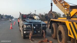 जबलपुर। खितौला थाना अंतर्गत पहरेवा हाइवे में सोमवार सुबह श्रद्धालुओं को लेकर प्रयागराज महाकुंभ से लौट रही फोरव्हीलर