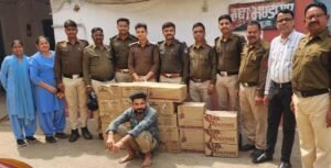 झाबुआ। जिले में अवैध मदिरा की बिक्री पर रोकथाम को लेकर वरिष्ठ अधिकारियों द्वारा दिये गये दिशा निर्देशों के पालन में जिला आकरी अधिकारी बसंती भूरिया के निर्देशन में 27 फरवरी को मुखबीर की सूचना पर आबकारी की संयुक्त टीम द्वारा आबकारी वृत्त झाबुआ ब के ग्राम ढोल्यावाड़ में मुखबीर द्वारा बताये स्थान मिलेश पिता रमेश अखाडि़या के घर पहुंचे जहां मकान की तलाशी लेने पर घर के अंदर एवं बाहर बैगपाईपर डिलक्स व्हिस्की 14 पेटी पाव, रॉयल स्टेग व्हिस्की 2 पेटी बोतल व 1 पेटी पाव एवं किंगफिशर बियर कैन 3 पेटी कुल 20 पेटी (कुल- 183.6 बल्क लीटर) अवैध मदिरा जप्त कर आरोपी मिलेश अखाडि़या के विरूद्ध मप्र आबकारी अधिनियम के तहत प्रकरण पंजीबद्व कर मौके पर से गिरफ्तार किया गया तथा प्रकरण विवेचना में लिया गया। उक्त जप्त मदिरा का अनुमानित बाजार मूल्य 1 लाख 71 हजार 360 रूपये है। उक्त कार्यवाही आबकारी उपनिरीक्षक विकास वर्मा द्वारा की गई एवं आबकारी उपनिरीक्षक अकलेश सोलंकी, रमेश सिसोदिया, योगेश सिसोदिया, प्रेमसिंह परमार सहित विभागीय टीम का सराहनीय योगदान रहा।
