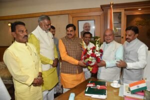 भोपाल:विधानसभा सत्र शुरू होने से पहले सीएम मोहन यादव और मंत्रिपरिषद सदस्यों ने विधानसभा अध्यक्ष नरेंद्र सिंह तोमर से उनके कमरे में भेंट कर पुष्प गुच्छ भेंट किया।