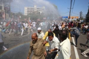 न्यू मार्केट चौराहे पर रोकने की कोशिश की गई, जिस पर पुलिस ने वाटर कैनन और आंसू गैस के गोले छोड़े, लाठी चार्ज किया गया, जिससे कई कार्यकर्ताओं को चोटें आईं।