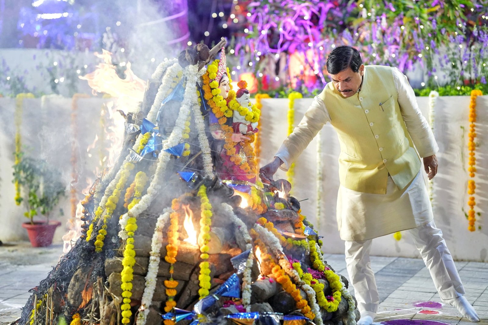 इस बीच मुख्यमंत्री डॉ. यादव ने गुरुवार की रात्रि मुख्यमंत्री निवास में विधि-विधान से पूजा-अर्चना कर होलिका दहन किया। उन्होंने मुख्यमंत्री निवास कार्यालय के अधिकारियों और कर्मचारियों को होली की बधाई दी।