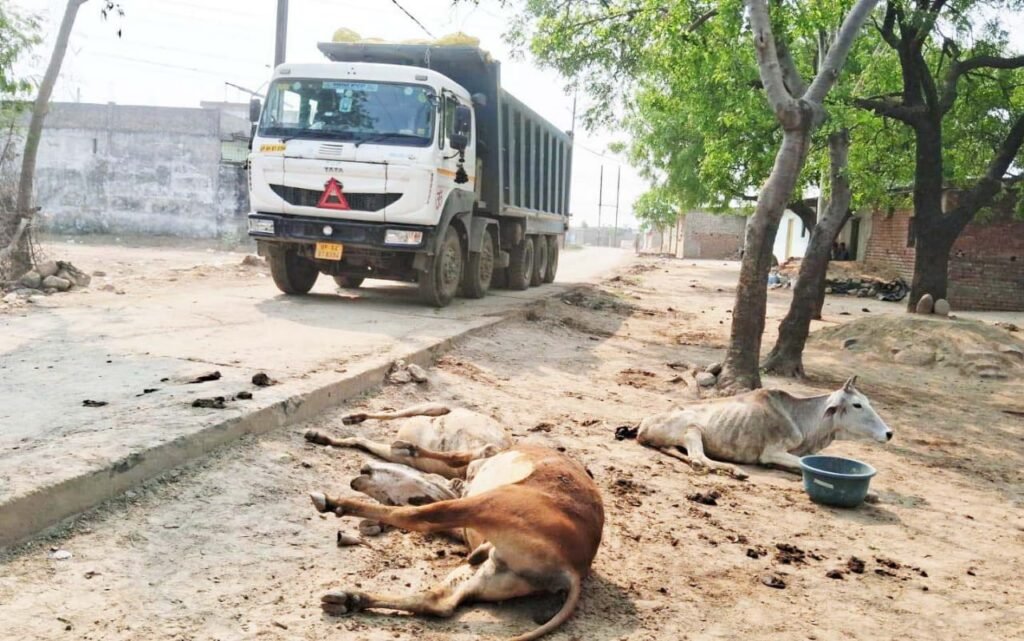मौहरिया टोला बस्ती में हाइवा वाहन चढ़ने से दो गाय मृत