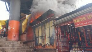 ओंकारेश्वर। आज यहां शॉर्ट सर्किट की वजह से दो दुकानों में आग लग गई। समाजसेवियों की मदद से बाल्टी से पानी डालकर एक दुकान की आग पर थोड़ा काबू पाया गया