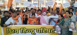भोपाल। पश्चिम बंगाल के कई जिलों में वक्फ कानून के खिलाफ भड़की हिंसा के विरोध में आज भोपाल में विश्व हिंदू परिषद ने स्टेट बैंक चौराहे पर प्रदर्शन कर पुतला फूंका। वीएचपी की ओर से राष्ट्रपति को संबोधित ज्ञापन भी सौंपा गया है।जिसमें बंगाल सरकार को बर्खास्त करने की मांग की गई है।