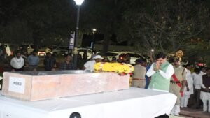 इंदौर: इंदौर. जम्मू-कश्मीर के पहलगाम में हुए आतंकी हमले में शहीद हुए इंदौर निवासी एलआईसी अधिकारी सुशील नथानियल का पार्थिव शरीर बुधवार रात इंदौर पहुंचा. मुख्यमंत्री डॉ. मोहन यादव ने जम्मू-कश्मीर के पहलगाम में पर्यटकों पर हुए आतंकी हमले में मृत इंदौर के स्व. सुशील नथानियल की पार्थिव देह पर पुष्प अर्पित कर श्रद्धांजलि दी. मुख्यमंत्री डॉ. यादव ने एयरपोर्ट इंदौर में शोकाकुल परिवारजनों से मिलकर अपनी शोक संवेदना व्यक्त की.