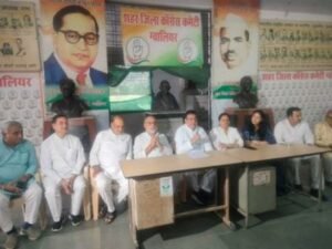 पत्रकार वार्ता में पार्टी के जिलाध्यक्ष डा देवेन्द्र शर्मा, कार्यकारी जिलाध्यक्ष महाराज सिंह पटेल, मीडिया प्रभारी धर्मेन्द्र शर्मा, प्रियंका शर्मा, राम पांडे, वेदप्रकाश भार्गव आदि मौजूद थे।