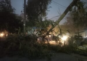 रीवा। मौसम का मिजाज सुबह से ही बदला था दोपहर तक बादल के साथ धुंध छाया था और ढ़ाई बजे तेज हवा के साथ आंधी चली. जिसके चलते टीन टप्पर जमीन पर आ गये और सडक़ किनारे लगी होर्डिंग गिर गई. कई जगह विद्युत पोल पर पेड़ गिरने से विद्युत आपूर्ति ठप्प हो गई. आंधी इतनी तेज थी कई जगह पेड़ गिर गये.