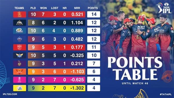रॉयल चैलेंजर्स बेंगलुरु के लिए भुवनेश्वर कुमार ने तीन और जॉश हेजलवुड ने दो विकेट लिये। यश दयाल और क्रुणाल पंड्या ने एक-एक बल्लेबाज को आउट किया।