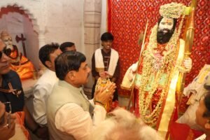 इंदौर। इंदौर जिले में महू के पास जाना पांव में परशुराम जन्म स्थल पर भगवान का पूजन करते हुए मध्य प्रदेश के मुख्यमंत्री डॉ मोहन यादव।
