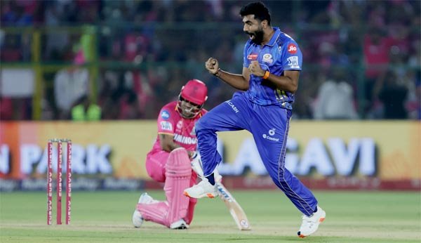 मुम्बई के 217 रनों के जवाब में बल्लेबाजी करने उतरी राजस्थान रॉयल्स की शुरूआत बेहद खराब रही और उसने पिछले मैच के रिकार्ड शतकवीर वैभव सूर्यवंशी (शून्य) का विकेट गवां दिया। वह मिडऑन के ऊपर से खेलने के प्रयास में दीपक चाहर की गेंद पर विल जैक्स द्वारा लपके गये। अगले ही ओवर में ट्रेंट बोल्ट ने यशस्वी जायसवाल (13) को बोल्ड कर मुम्बई को दूसरी सफलता दिलाई। इसके बाद मुम्बई के गेंदबाजों ने राजस्थान के बल्लेबाजों को पिच पर अधिक देर टिकने ही नहीं दिया। नीतीश राणा (दो), बोल्ट ने कप्तान रियान पराग (16), शिमरॉन हेटमायर (शून्य) को जसप्रीत बुमराह ने आउट किया। ध्रुव जुरेल (11), शिवम दुबे (15) और महीश तीक्षणा (दो) रन बनाकर आउट हुये। ट्रेंट बोल्ट की 17वें ओवर की पहली गेंद पर जोफ्रा आर्चर (30) शॉट मारने के प्रयास में बुमराह द्वारा लपके गये। इसी के साथ राजस्थान रॉयल्स की पूरी टीम 16.1 ओवर में 117 रन पर सिमट गई।