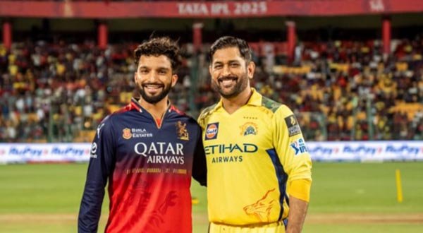 बेंगलुरु 03 मई (वार्ता) चेन्नई सुपर किंग्स (सीएसके) ने इंडियन प्रीमियर लीग (आईपीएल) के 52वें मुकाबले में शनिवार को टॉस जीत कर रॉयल चैलेंजर्स बेंगलुरु (आरसीबी) को पहले बल्लेबाजी करने का निमंत्रण दिया।