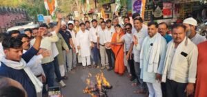 ग्वालियर में कांग्रेस नेताओं ने अलग-अलग जगह मंत्री विजय शाह का पुतला दहन करते हुए उनके इस्तीफे की मांग की। ग्वालियर के उरवाई गेट पर एमपी कांग्रेस के महासचिव सुनील शर्मा के नेतृत्व में कांग्रेस ने जमकर विरोध प्रदर्शन कर मंत्री विजय शाह का पुतला दहन किया। इस दौरान उन्होंने जमकर नारेबाजी भी की और मुख्यमंत्री मोहन यादव और प्रधानमंत्री नरेंद्र मोदी से विजय शाह के मंत्री पद से बर्खास्त करने की मांग भी की।