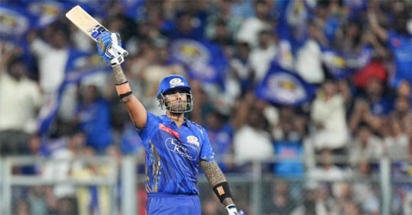 चौथे बल्लेबाज के रूप में मैदान में उतरे सूर्यकुमार यादव ने पारी को संभालने का प्रयास किया। हालांकि इस दौरान तिलक वर्मा (27) और उसके बाद कप्तान हार्दिक पंड्या (तीन) रन बनाकर आउट हुये। अब बारी थी नमन धीर की। उन्होंने सूर्यकुमार यादव के साथ छठे विकेट लिये तूफानी बल्लेबाजी का मुजाहिरा करते हुए अविजित 57 रन जोड़े। मुम्बई इंडियंस ने निर्धारित 20 ओवरों में पांच विकेट पर 180 रन का स्कोर खड़ा किया। सूर्यकुमार यादव ने 43 गेंदों में सात चौके और चार छक्के लगाते हुए (नाबाद 73) रनों की पारी खेली। वहीं नमन धीर ने आठ गेंदों में दो चौके और दो छक्के लगाते हुए (नाबाद 24) रन बनाये।