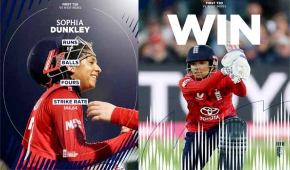 कैंटरबरी, 22 मई (वार्ता) गेंदबाजों के शानदार प्रदर्शन के बाद सोफिया डंकली (नाबाद 81) और हीथर नाइट (43) की बेहतरीन पारियों की बदौलत इंग्लैंड की महिला टीम ने वेस्टइंडीज को 21 गेंदे शेष रहते आठ विकेट से हरा दिया।