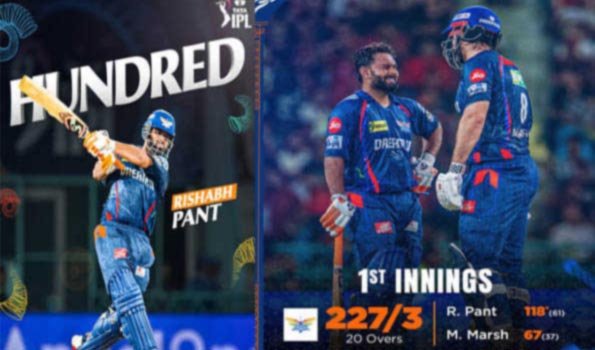 लखनऊ 27 मई (वार्ता) रिषभ पंत (118 नाबाद) के शानदार शतक और मिचेल मार्श (67) के साथ 152 रनों की बेहतरीन साझीदारी की मदद से लखनऊ सुपर जायंट्स (एलएसजी) ने इंडियन प्रीमियर लीग (आईपीएल) 2025 के अपने अंतिम मुकाबले में मंगलवार को रॉयल चैलेंजर्स बेंगलुरु (आरसीबी) के खिलाफ तीन विकेट पर 227 रन का चुनौतीपूर्ण स्कोर खड़ा कर लिया।