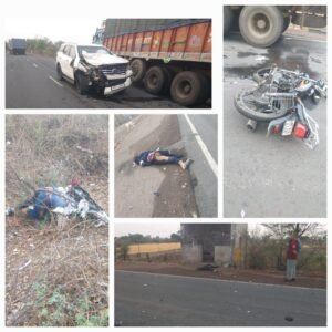 दमोह:लगातार सड़क हादसे रूकने का नाम नहीं ले रहे हैं, आज सुबह 5 बजे जिले के देहात थाना क्षेत्र के अंतर्गत दमोह-टीकमगढ़-छतरपुर मार्ग मारा के पास पुनः एक एक्सीडेंट हुआ.जिसमें बाइक में सवार 3 लोगों की भिड़ंत एक फॉर्च्यूनर कार चार पहिया वाहन से हो जाने पर तीनों की मौत हो गई.