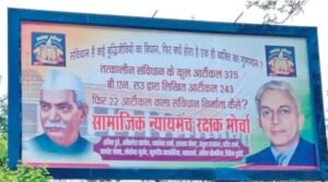 सामाजिक न्यायमंच रक्षा मोर्चा ने जो होर्डिंग लगाए हैं, उनमें लिखा है कि संविधान है कई बुद्धिजीवियों का विधान, फिर क्यों होता एक व्यक्ति का गुणगान। संविधान में राष्ट्र के कई बुद्धजीवियों का विधान है। संविधान सभा के अध्यक्ष डा. राजेंद्र प्रसाद, अखंड भारत का निर्माण करने वाले लौह पुरुष सरदार वल्लभ भाई पटेल एवं 375 आर्टिकल में से 243 आर्टिकल लिखने वाले बीएन राव क्यों गुमनाम। इन होर्डिंग्स में सभी के फोटो भी लगे हैं।