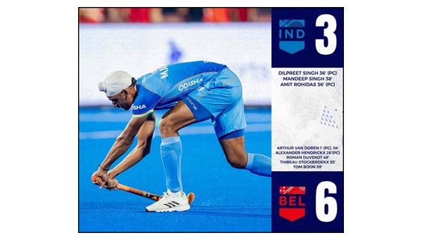 दिलप्रीत सिंह (36’) और मंदीप सिंह (38’) के गोलों ने भारत को दो गोल से पिछड़ने से वापस लाने में मदद की, जबकि अमित रोहिदास (56’) के आखिरी क्षणों में किए गए तीसरे गोल ने भारत को मुकाबले में बनाए रखा। इस बीच, आर्थर वान डोरेन (1’, 54’) के दो गोल और अलेक्जेंडर हेंड्रिक्स (28’), रोमन डुवेकोट (49’), थिब्यू स्टॉकब्रोक्स (53’) और टॉम बून (59’) के गोलों ने बेल्जियम की जीत की कहानी लिखी।