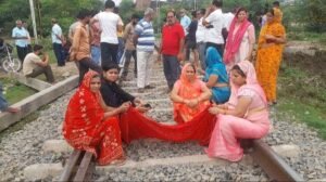 सतना : शहर के मारुति नगर क्षेत्र में गुरुवार को उस वक्त तनावपूर्ण स्थिति बनती नजर आई जब रेलवे क्रॉसिंग के रास्ते को बंद किए जाने की कवायद की जाने लगी. एक ओर जहां आक्रोशित महिलाएं धरना देते हुए रेलवे ट्रैक पर बैठ गईं वहीं दूसरी ओर क्षेत्र के अन्य लोग भी समर्थन में खड़े हो गए. विरोध प्रदर्शन के चलते मुख्त्यारगंज-बिरला साइडिंग का रेल मार्ग घंटे भर से अधिक समय तक बाधित रहा.