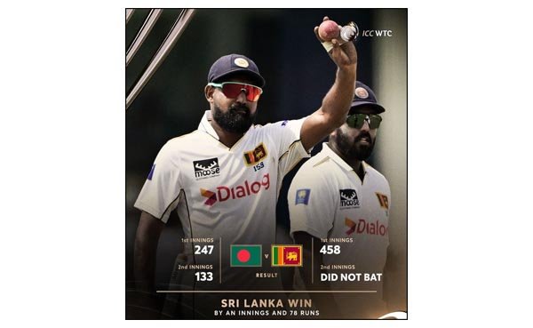 मोमिनुल हक कैच कामिंडु बोल्ड धनंजय………………….15