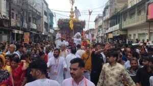 गुना। रविवार को गुना शहर धर्ममय वातावरण से सराबोर हो उठा जब अंतरराष्ट्रीय कृष्णभावनामृत संघ (इस्कॉन) के तत्वाधान में भगवान श्री जगन्नाथ, बलराम और सुभद्रा जी की भव्य रथयात्रा नगर में निकाली गई। रिमझिम बारिश की फुहारों के बीच भक्तों का उत्साह देखते ही बन रहा था। श्रद्धालु भजनों पर झूमते, नाचते, हरिनाम संकीर्तन करते हुए रथयात्रा में शामिल हुए और जय जगन्नाथ के जयकारों से पूरे नगर को गुंजायमान कर दिया। यह पावन यात्रा शहर के जज्जी बस स्टैंड के पास स्थित एक होटल से प्रारंभ हुई और नगर के प्रमुख मार्गों, बाजारों से होते हुए गायत्री मंदिर के पास स्थित गार्डन तक पहुंचकर संपन्न हुई। रथ उज्जैन से विशेष रूप से मंगवाया गया था, जिसमें भगवान श्री जगन्नाथ, बलराम और सुभद्रा जी की अलौकिक प्रतिमाएं पूरे वैदिक विधि-विधान से विराजित की गईं। रथयात्रा से पूर्व इन प्रतिमाओं का भव्य अभिषेक एवं पूजा-अर्चना की गई।
