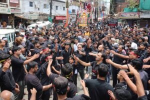 भोपाल। राजधानी भोपाल में आज कई क्षेत्रों से बारिश के बीच मोहर्रम का जुलूस निकाला गया। मुख्य जुलूस की शुरुआत फतेहगढ़ से हुई और वह करबला तक गया। इसी तरह चार अन्य स्थानों से भी मातमी जुलूस निकले जिसमें बड़ी संख्या में लोग शामिल हुए।