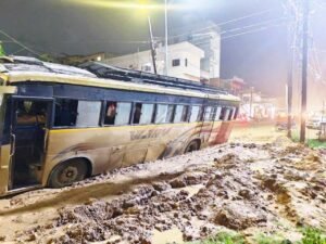गौरतलब हो कि अभी पिछले महीने नगर पालिक निगम सिंगरौली के अध्यक्ष देवेश पाण्डेय ने विधिवत प्रेसवार्ता कर शहर के विकास की उपलब्धियां गिना रहे थे। उन्होंने कहा था कि बारिश का दौर शुरू हो गया है, ऐसे में शहर में मिट्टी के जो काम हो रहे हैं, उन्हें रोका जाएगा। पाईप लाईन के काम बारिश में नही होंगे। क्योंकि गड्ढे व मिट्टी खोदने से आवागमन में दिक्कत हो रही है, लेकिन अध्यक्ष के आदेश की खुलेआम ननि के ठेकेदार अवहेलना कर रहे हैं। शहर की तस्वीर गैस पाईप व सिवरेज लाईन ने बिगाड़ दिया है। जगह-जगह इस तरह से मिट्टी की खुदाई सड़क पर की गई है कि आये दिन वाहन फस रहे हैं और आम जनता को परेशानियों का सामना करना पड़ रहा है। गनियारी मार्ग में इस तरह से मुख्य मार्ग पर सड़क की खुदाई की गई है कि इस दलदल मिट्टी में बस की पहिये घुस गये। यह नजारा देख यात्री हरकत में आ गये। तत्काल बस से कुदने का प्रयास करने लगे। लेकिन गनीमत रही किसी तरह बस चालक ने सुझबूझ दिखाते हुये बस को निकाला। ऐसे ही कई बसे और हैव्ही वाहन इस दलदल खाईनुमा गड्ढे में फसते रहें। शहर का कोई ऐसा वार्ड नही है, जहां गैस पाईप लाईन के द्वारा सड़को की खुदाई न की गई। खुदाई करने के बाद ठेकेदार मिट्टी पटाई के साथ-साथ सिमेंटेड करना सड़क को भूल गये। बारिश के चलते आये दिन इस दलदल में वाहन फस रहे हैं। इसके बावजूद ऐसे संविदाकारों पर कार्रवाई नही हो रही है। सोशल मीडिया पर जब लोगों ने बसों के फसे होने का वीडियों डाला तो आज दिन सोमवार को नगर निगम आयुक्त डीके शर्मा सहित अधिकारियों ने निरीक्षण करते हुये ठेकेदार को जमकर फटकार लगाते हुये दो दिन के अंदर सड़क का विधिवत मरम्मतीकरण करने के निर्देश दिये हैं। हालांकि बस सुबह क्रेन के सहारे गड्ढे से बाहर निकाली गई।