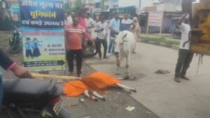 ऐसे ही एक घटनाक्रम में सोमवार की तडक़े सुठालिया में ब्यावरा रोड पर थाने के सामने एक यात्री बस ने गाय को टक्कर मार दी जिससे गाय ने मौके पर ही दम तोड़ दिया. घटना के बाद चालक बस छोडक़र भाग गया.