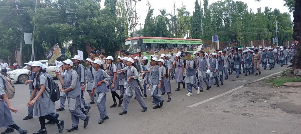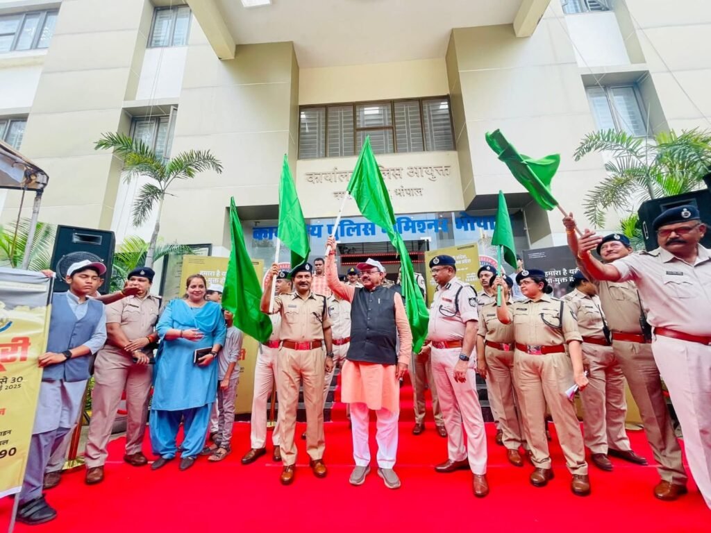 भोपाल। नशे से दूरी–है जरूरी विषय पर नशा मुक्ति अभियान का पोस्टर लांच होने के बाद आज शाम को पुलिस आयुक्त हरिनारायणाचारी मिश्र द्वारा कमिश्नर कार्यालय से जन जागरूकता रैली को हरी झंडी दिखाकर रवाना किया गया। रैली कमिश्नर कार्यालय से प्रारंभ होकर रोशनपुरा चौराहे तक गई। इसमें नगर सुरक्षा समिति, शक्ति समिति, सृजन संस्था के बालक-बालिकाएं, पुलिस बल और गणमान्य नागरिक शामिल थे।