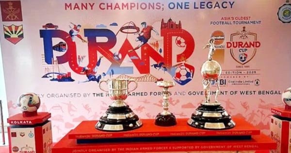 डूरंड कप की तीन ट्रॉफियां यहां एओआई विजय दुर्ग में पश्चिम बंगाल सरकार के बिजली, आवास, युवा सेवा एवं खेल विभाग के प्रभारी मंत्री अरूप बिस्वास की उपस्थिति में प्रदर्शित की गईं, जो इस कार्यक्रम के मुख्य अतिथि थे।