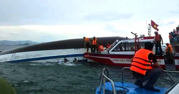 एजेंसी ने बताया कि जहाज के मलबे को आज तड़के जाँच के लिए किनारे पर लाया गया। दुर्घटना के समय जहाज पर 48 वियतनामी पर्यटक सवार थे। दस पर्यटकों को बचा लिया गया।