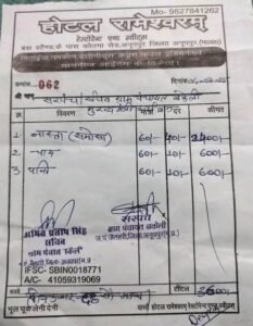 बिल में नाश्ते की आपूर्ति होटल रामेश्वरम् से दिखाया गया है। जब दुकानदार से संपर्क किया गया तो उसने समोसे की कीमत बाजार दर के अनुसार ही बताने की बात कही, लेकिन बिल में 10 रुपए के समोसे की जगह 40 रुपए की दर पर ओवरराइटिंग कर दी गई है। महत्वपूर्ण बात यह है कि इस फर्जीवाड़े को पंचायत सचिव और सरपंच की स्वीकृति भी प्राप्त है।