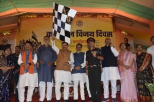 रीवा।कारगिल विजय दिवस के अवसर पर सैनिक स्कूल रीवा में आयोजित कार्यक्रम में मुख्यमंत्री डॉ. मोहन यादव ने शहीद स्मारक में पुष्पचक्र अर्पित कर देश की रक्षा के लिए अपने प्राणों को न्यौछावर करने वाले वीर सैनिकों की शहादत को नमन किया. मुख्यमंत्री ने कारगिल युद्ध में शहीद सैनिकों के चित्र पर भी पुष्पांजलि अर्पित की. इस अवसर पर उन्होंने कारगिल युद्ध में शहादत देने वाले गनर छोटे लाल सिंह की पत्नी श्रीमती विद्या देवी तथा नायक कालू प्रसाद की पत्नी श्रीमती श्यामकली देवी को शाल और श्रीफल कर सम्मानित किया.