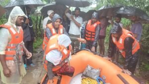 विदिशा, ग्यारसपुर तहसील के ग्राम सुजवाह में भारी बारिश के चलते बाढ़ की स्थिति उत्पन्न हो गई, जिससे गांव में लगभग 30 से 35 लोगों के फंसे होने की सूचना मिलते ही होमगार्ड दल एवं मुख्यालय से डिस्ट्रिक्ट कमांडेंट होमगार्ड मयंक कुमार जैन के नेतृत्व में एसडीईआरएफ की रेस्क्यू टीम रवाना किया गया. प्लाटून कमांडर रश्मि दुबे और टीम ने कार्रवाई करते हुए कुल 37 महिला, पुरुष एवं बच्चों को रेस्क्यू कर सुरक्षित स्थान पर पहुंचाया गया।