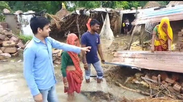 बाथम मोहल्ले में पानी भरा, मकान गिरे, लोग बेघर